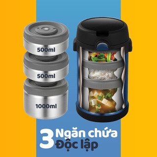 Hộp Cơm Trưa Giữ Nhiệt lên đến 12 Tiếng Nóng, 12 Tiếng Lạnh Giữ nhiệt lâu hiệu quả với lớp chân không cách nhiệt 3 hộp đựng thực phẩm từ Inox 304, An toàn tuyệt đối cho sức khỏe Tiện lợi mang thực phẩm đi làm, đi học, Không cần phải hâm nóng thức ăn Sản ph