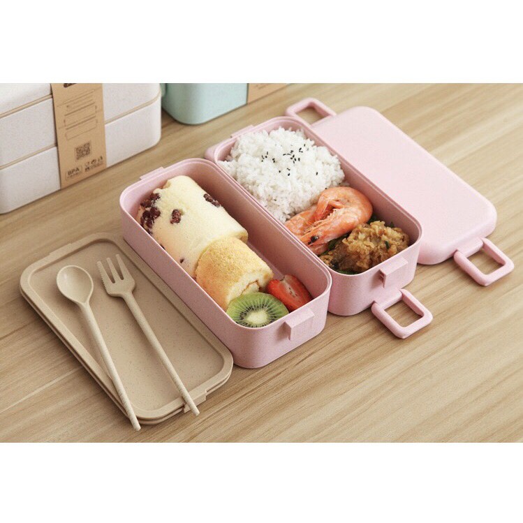 _Hộp Cơm Lúa Mạch 2 Tầng 3 Màu Pastel Xinh Xắn 800ML