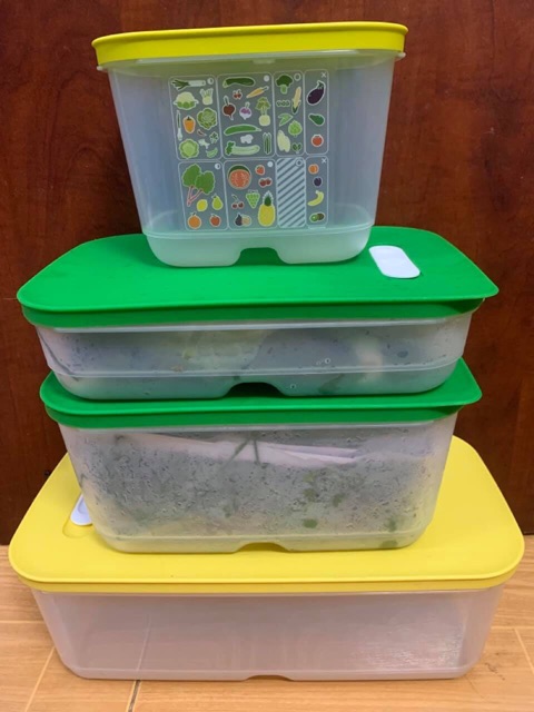 1.8L cao / 19 x 14 x 13.5cm (2) - 495.000 đồng/ cái 1.8L thấp /7 x 28.5 x 18.5 cm (2) – 495.000 đồng/hộp 4.4L/ 28.5 x 19 x 13.5cm (2) - 748.000 đồng/ cái 6.1L/ 19 x 38 x 13.5cm (1) - 905.000 đồng/hộp Ưu điểm và tiện ích: - Bộ hộp bảo quản thực phẩm có thiết kế thông minh vượt trội - Hướng dẫn bảo quản rau củ quả theo nhóm hô hấp được in trực tiếp trên thân hộp nhựa - Vent điều chỉnh 3 hệ thống hô hấp khác nhau nằm ngay trên nắp hộp bảo quản thực phẩm - Thiết kế 4 hốc ở đáy là nơi tụ nước thừa từ quá trình hô hấp/rửa rau, tránh việc tiếp xúc trực tiếp của nước và rau quả dẫn đến úng và thối - Tối đa hóa không gian tủ lạnh: Sản phẩm có nhiều kích cỡ nhưng thiết kế theo dạng mô đun, hoàn toàn có thể xếp chồng các hộp trữ mát lên nhau thành khối, rất tiết kiệm diện tích - Nhựa an toàn: chất liệu nhựa nguyên sinh không chứa BPA, an toàn đựng thực phẩm và an toàn khi dùng trong môi trường nhiệt độ thấp trong tủ lạnh Công dụng: - Bộ hộp trữ mát chuyên dùng lưu trữ các loại rau củ quả tươi trong ngăn mát tủ lạnh