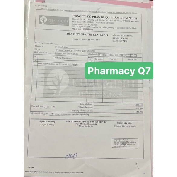 Hộp lớn tiết kiệm 80 viên Bình Vị Thái Minh Quy cách: Hộp 1 lọ Thành phần Bình Vị Thái Minh Thực phẩm bảo vệ sức khỏe Bình Vị Thái Minh dùng cho người trào ngược dạ dày và viêm loét dạ dày. GIGANOSIN (chiết xuất từ dạ cẩm và lá khôi)……………………………250mg Mucosave FG HIA (chiết xuất cây xương rồng và lá Oliu)…………..100ng Cao Núc Nác……………………………………………………………………………….100mg Cao Thương truật…………………………………………………………………………100mg Kẽm gluconat……………………………………………………………………………….18.75mg Công dụng Bình Vị Thái Minh: Trung hòa, giảm tiết acid dịch vị, ngăn hiện tượng trào ngược acid dạ dày Ức chế vi khuẩn HP- nguyên nhân hàng đầu gây viêm loét dạ dày Bao bọc, bảo vệ niêm mạc dạ dày giúp hồi phục vết loét, giảm đau dạ dày Kích thích tiêu hóa, tăng tốc độ tháo rỗng của dạ dày, giảm trào ngược, đầy bụng, ợ hơi, ợ chua Đối tượng sử dụng Bình Vị Thái Minh: Người bị trào ngược dạ dày Người bị viêm loét dạ dày với các biểu hiện: ợ chua, ợ hơi, đau thượng vị Cách dùng Bình Vị Thái Minh: Uống tăng cường: Ngày uống 2 lần, mỗi lần 2-3 viên, trước ăn 30 phút Uống duy trì: Ngày uống 2 viên, trước ăn 30 phút Bảo quản: Nơi khô ráo, thoáng mát, tránh ánh sáng trực tiếp chiếu vào sản phẩm. Để xa tầm tay trẻ em Chú ý: Thực phẩm này không phải là thuốc và không có tác dụng thay thế thuốc chữa bệnh Không dùng cho người có tác dụng không mong muốn hoặc mẫn cảm với bất kỳ thành phần nào của sản phẩm Số đăng ký sản phẩm: 863/2020/ĐKSP Xuất xứ: Việt Nam Sản xuất: Công ty Cổ Phần công nghệ cao Thái Minh Sản phẩm này không phải là thuốc và không có tác dụng thay thế thuốc chữa bệnh