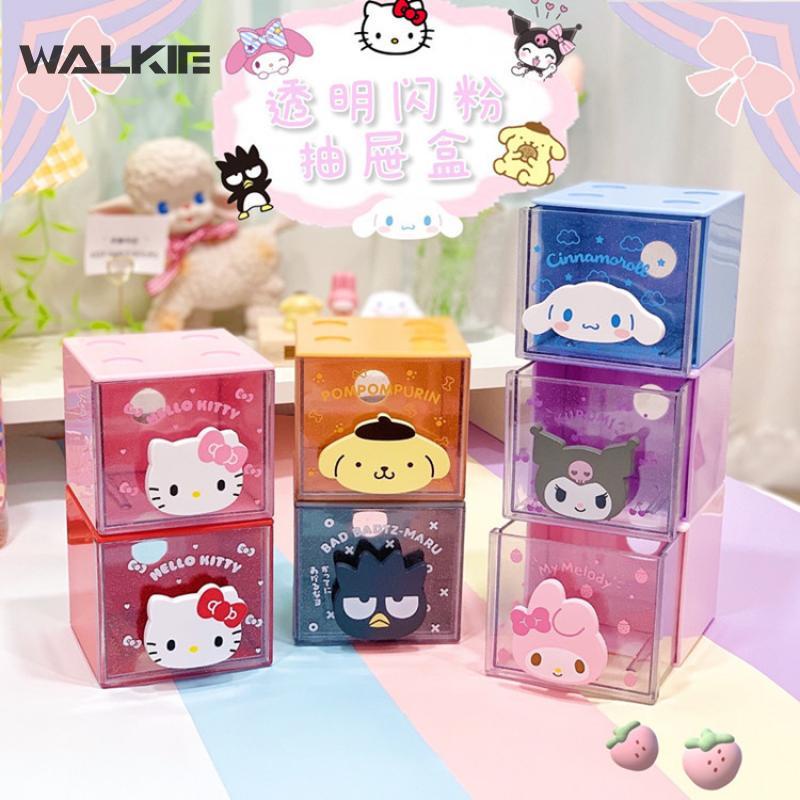 Walkie Kawaii 9Cmx9Cmx8Cm Cinnamoroll My Melody Kuromi Glitter Hộp ngăn kéo trong suốt Hộp đựng đồ vệ sinh Anime chống bụi Kích thước: 9cm * 9cm * 8cm Chất liệu: vật liệu ABS trong suốt Hãy thoải mái với các mảnh ghép tuyệt vời theo ý muốn Có thể để một số vật dụng nh