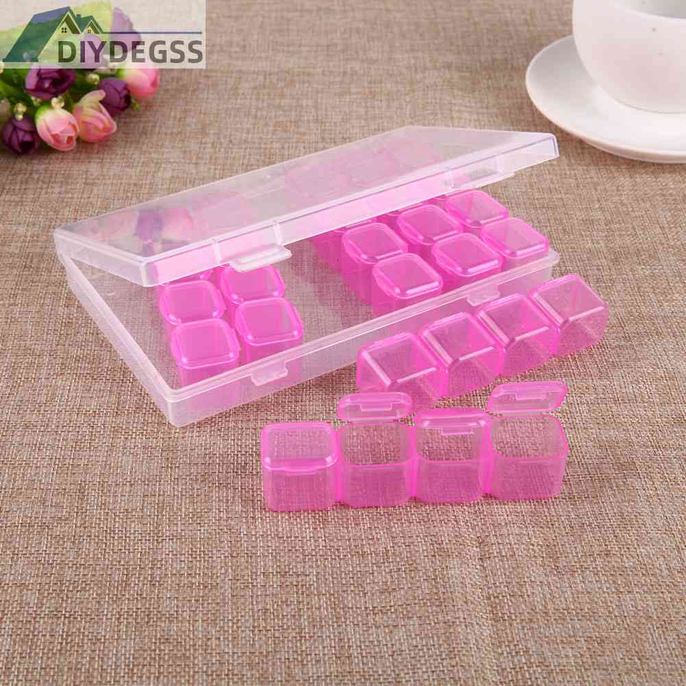 Hộp Nhựa Trong Suốt 28 Ngăn Đựng Hạt Kim Cương Trang Trí Móng Tay