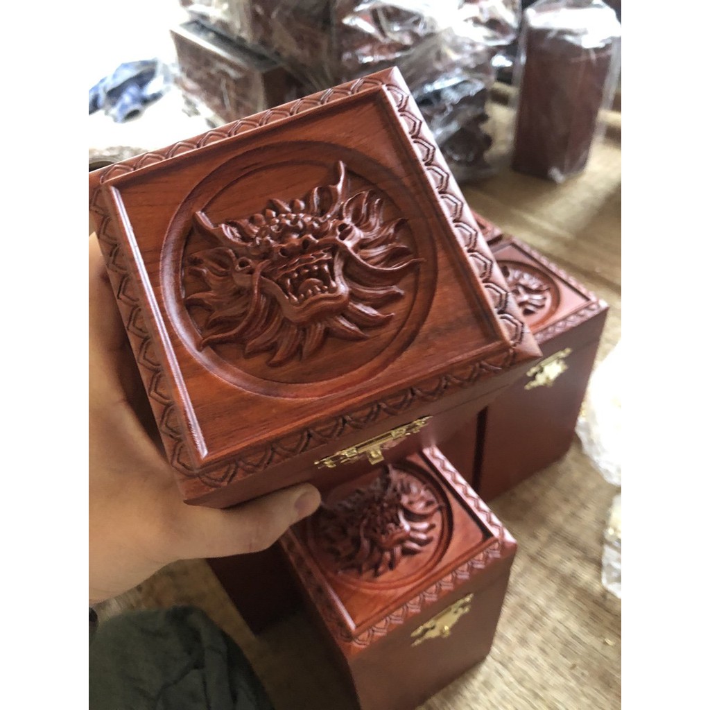 Hộp Trà Đầu Rồng Gỗ Hương Vân Cao Cấp