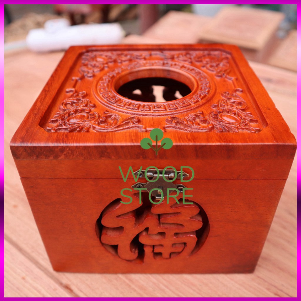 Hộp vuông đựng giấy ăn bằng gỗ hương