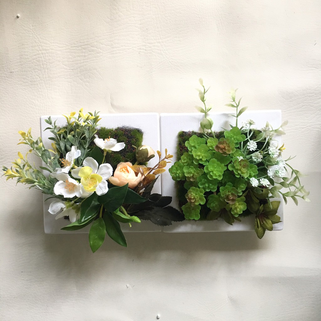 Khung tranh cây sen đá giả, hoa giả treo tường cỡ 15x15 Khung tranh cây hình vuông được cắm kết hợp giữa các loại hoa giả, Sen đá, xương rồng giả tạo thành 1 bức tranh nhỏ dùng để treo tường trang trí phòng khách, văn phòng hoặc cửa hàng đều rất độc đáo lạ mắt. Kíc