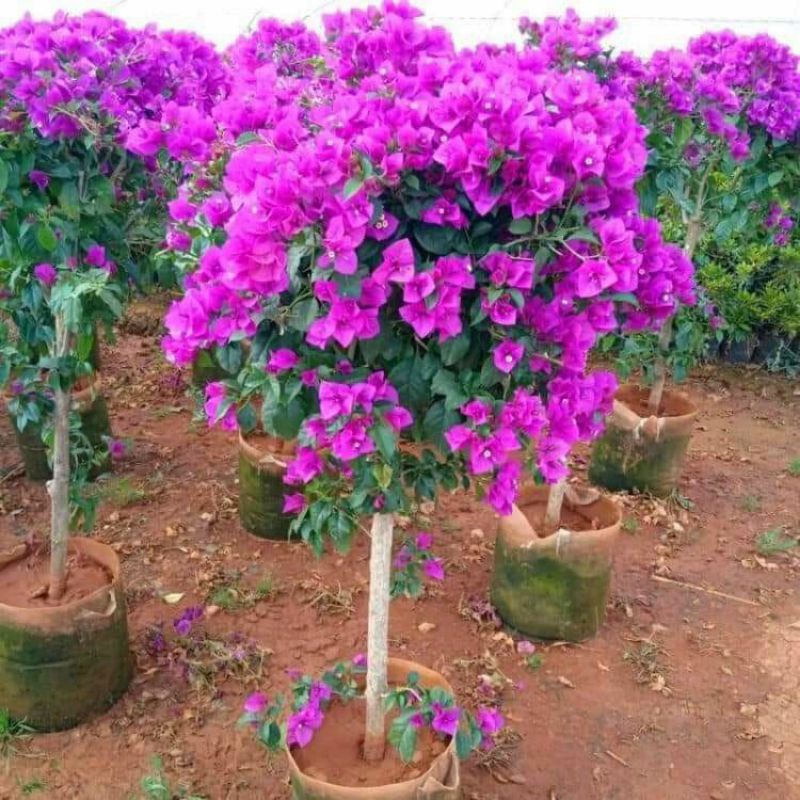Hoa giấy tím pháp Không nở 1 loạt theo lứa mà nở nối tiếp nhau. Cây đủ khoẻ thì hoa ra không ngừng nghỉ không trút lá. Lá xanh bóng nhẹ ,màu đỏ tím đậm bền hoa, thân gỗ không vươn mạnh. Cây có thể đang hoa hoặc hết hoa tùy thời điểm khách đặt
