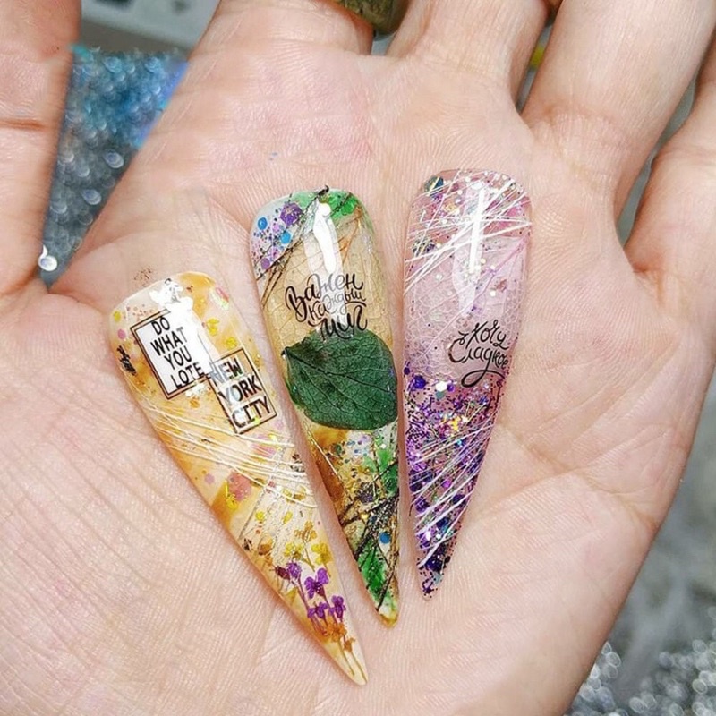 Hoa khô ẩn gel trang trí móng siêu đẹp đủ mẫu