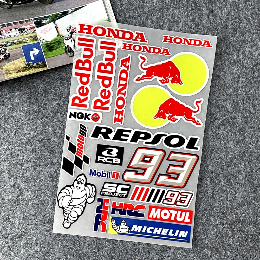 HONDA 1 set a4 Nhãn Dán Phản Quang red bull 93 Trang Trí Mũ Bảo Hiểm Xe Mô Tô