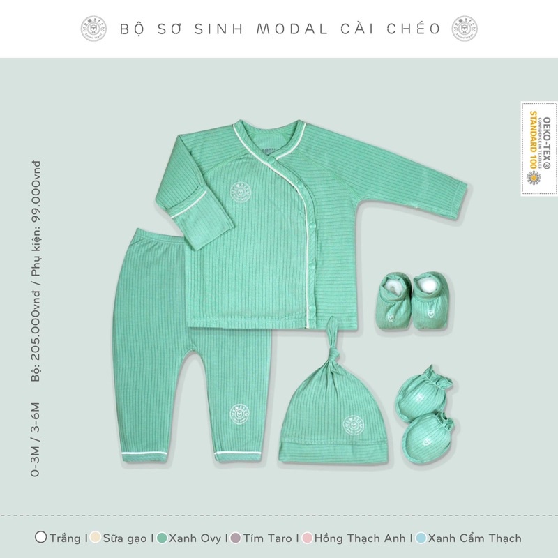 HRNEE chính hãng - Bộ sơ sinh vải modal gỗ sồi cài chéo size 0-3M, 3-6M