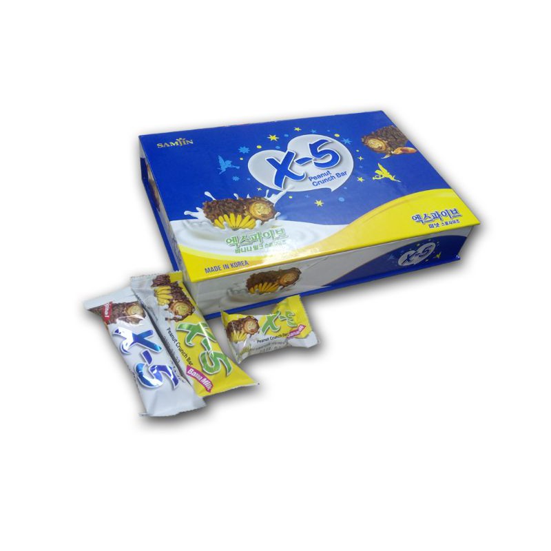 Hộp bánh sôcôla Samjin X5 đậu phộng Xuất xứ: Samjin Confectionery Co.,Ltd Hàn Quốc Bánh socola X5 nhân đậu phộng được nhập khẩu từ Hàn Quốc, với hương vị thơm ngon bổ dưỡng được kết hợp từ các nguyên liệu ngũ cốc tự nhiên kết hợp với phong vị Hàn Quốc mang lại cảm g