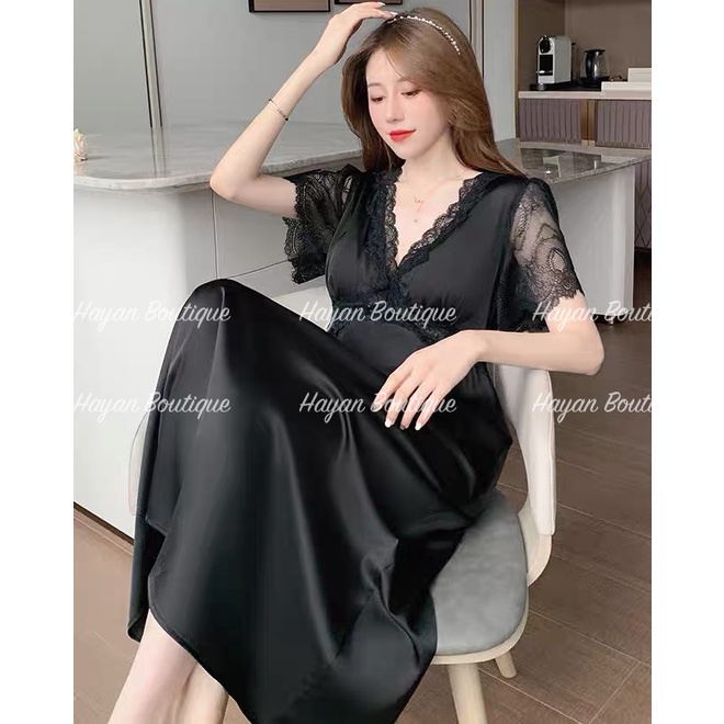 HT93 Váy ngủ sexy phối ren tay lỡ kèm ĐỆM LÓT, đồ ngủ lụa mặc nhà gợi cảm thướt tha HT93 MÚT