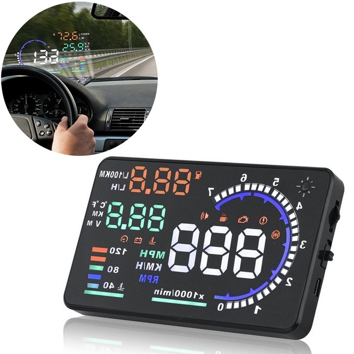 HUD hiển thị tốc độ trên kính lái xe ô tô - Màn hình sử dụng công nghệ nano - Thiết kế hiển thị thông số nhiều màu sắc HUD hiển thị tốc độ trên kính lái xe ô tô A8:1. Hiển thị tốc độ trên kính lá...