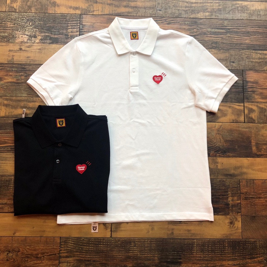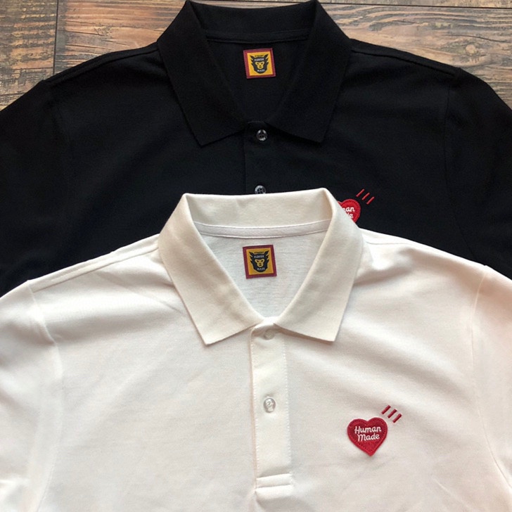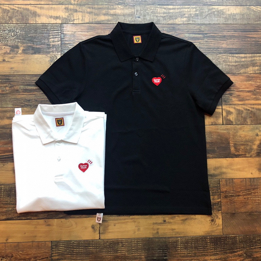 Human made small red heart print men and women piqué cotton summer simple lapel T-shirt polo