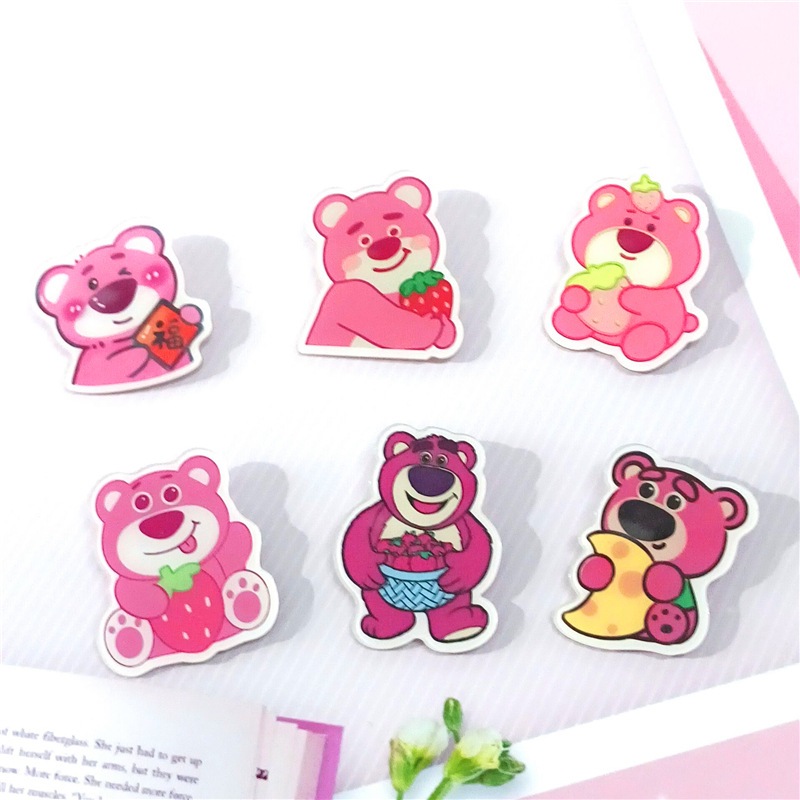 Huy Hiệu Cài Áo Gấu Dâu, Ghim Cài Quần Áo Gấu Lotso, Huy Hiệu Cài Balo Anime Cute, Ghim Pin Cài Cặp đồ 1k free ship