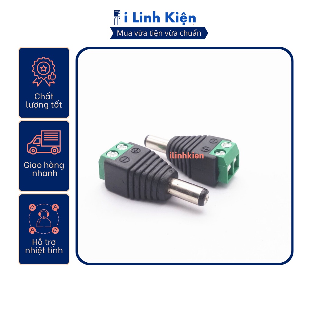 Jack nguồn DC đực 5.5x2.1mm đấu dây dùng vít. Lợi ích khách hàng nhận được khi mua hàng tại iLinhkien: - iLinhkien luôn ưu tiên quan tâm khach hàng, giải quyết vấn đề của khách hàng: cần linh kiện gì cũng có, không có thì đi lấy cho. - Chất lượng hàng đảm bảo, đơn h