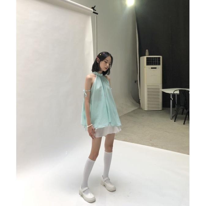 Một chiếc áo mơ mộng như bầu trời mùa hạ, chất vải mỏng nhẹ cùng màu bạc hà làm dịu mắt. - Áo thiết kế cổ y.ế nút ngọc phía sau -Hai dây bên hông giúp trông lạ mắt, có thể...
