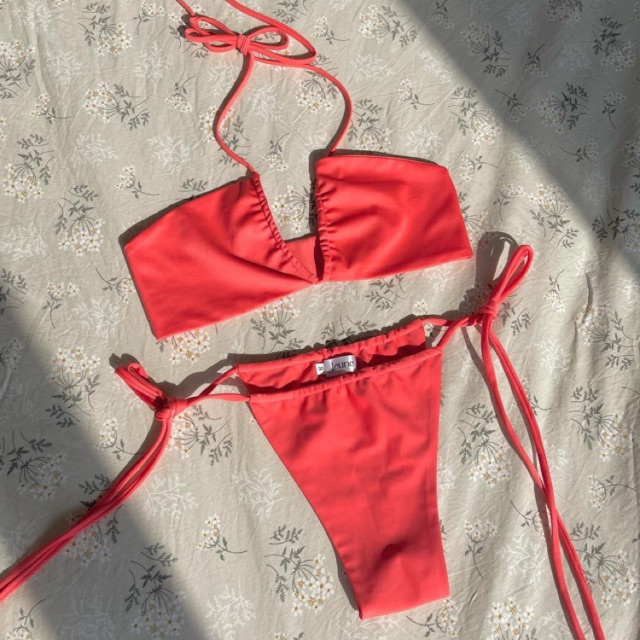 1. Chất liệu: Thun co giãn tốt mặc đi bơi, đi tắm biển 2. Thiết kế - Kiểu dáng: 2 mảnh - Áo dáng tam giác dây dài, có đệm mút bên trong. Mặc được 02 kiểu dáng - Quần thắt dây quai bên hông, tuỳ chỉnh kích cỡ. 3. Size - Size S: Ngực/bust 80 - 88cm. Mông/hip 82 - 98cm Follow Jeune IG/FB @jeunevn Mua sỉ / Cộng tác viên: 034-3344-216 Đổi trả sản phẩm: Liên hệ đổi trả với Jeune trong vòng 05 ngày kể từ khi nhận sản phẩm nếu bạn chưa ưng ý. #bikini #summer #holiday #đồbơi #monokini #bikinihcm #bikinisaigon #doboi #dibien #bikini #nhung #velvet #capcao #captre #sexy