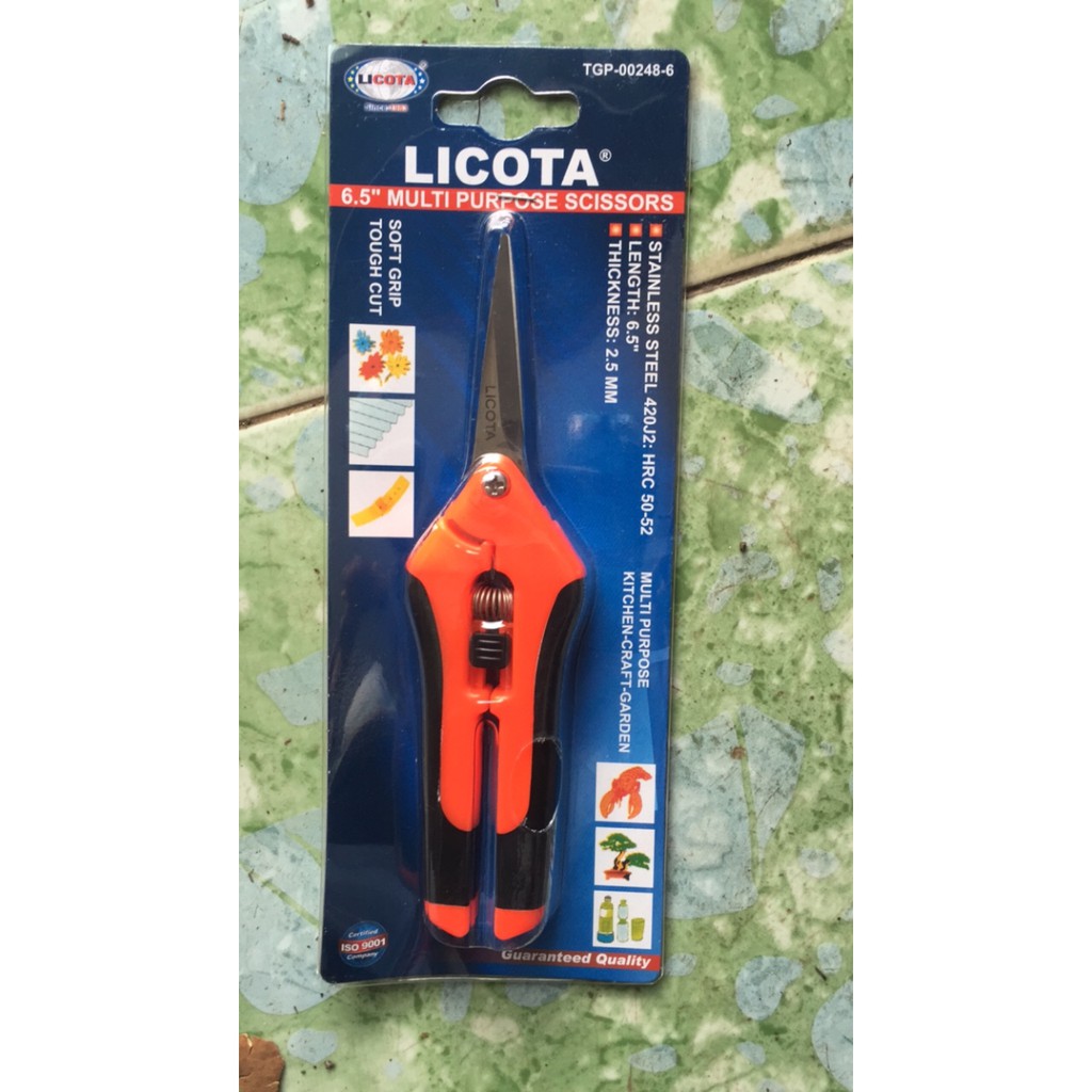 Kéo cắt tỉa và bấm Licota được thiết kê với đầu rất nhọn, lưỡi thẳng và ngắn nên rất hiệu quả khi bấm tỉa. · Công dụng Kéo cắt tỉa và bấm được thiết kế nhỏ gọn với lưỡi thẳng đầu nhọn. Chiếc kéo này có kích thước nhỏ hơn với đầu rất nhọn nên rất hiệu quả khi sử dụng để bấm tỉa. Ngoài ra kéo vẫn có thể vừa được dùng để cắt. Vẫn với thiết kế lưỡi thẳng khiến lực cắt phân bố đều 2 hướng của lưỡi kéo nên vết cắt sẽ phẳng và đều hơn.