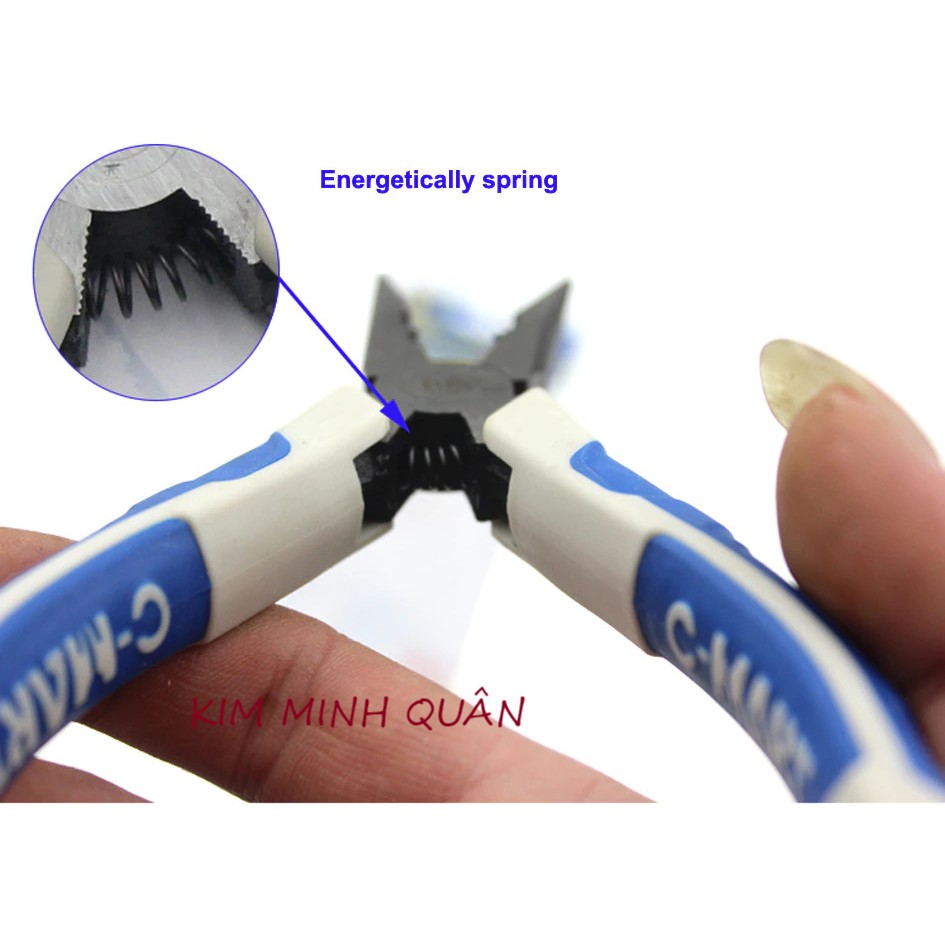 Kìm Nhọn Công Nghiệp 150mm, 200mm B0154 CMart - Model: B0154-08 - Nhà sản xuất : Cmart - Kìm được chế tạo từ thép CR-V Cao cấp - Cán kìm được bọc nhựa mềm, giúp thao tác êm tay - Thiết kế tiện dụng, cán cầm vững chắc - Kích thước:6" (150mm) , 8” (200mm) - Công dụng: kẹp giữ, cắt dây điện, kẽm - Màu sắc: cán nhựa xanh cám Kìm nhọn công nghiệp B0154. Với thiết kế mũi kìm nhọn và dài, sản phẩm này phù hợp sử dụng tại các vị trí nhỏ hẹp hoặc nằm sâu bên trong. Đầu kìm được chế tạo từ thép tốt, và được xử lý nhiệt đặc biệt, nhằm gia tăng độ cứng cho đầu và lưỡi cắt của kìm. Đầu kìm được thiết kế nhiều răng nhỏ, mục đích để kẹp giữ các vật nằm sâu bên trong. Và đầu kìm được phủ lớp xi đen, chống gỉ sét, và tạo vẻ mạnh mẻ cho kìm. Cán kìm được bọc lớp nhựa mềm cách điện, giúp thao tác êm tay khi dùng lực mạnh. Bảo hành 1 đổi 1 100% hàng chính hãng SHOP CHUYÊN CUNG CẤP SĨ LẼ DỤNG CỤ CẦM TAY , DỤNG CỤ KIM KHÍ , VẬT LIỆU TIÊU HAO VV.... SHOP KIM MINH QUÂN KẾT NỐI - UY TÍN - CHẤT LƯỢNG 0366681879