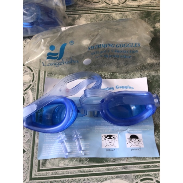 Kính Bơi trẻ em xanh nước đậm có kèm nút bịt tai