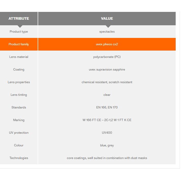 Kính UVEX 9198275 Pheos CX2 spectacles supravision sapphire chống trầy xước và hóa chất ở 2 bề mặt kính, tặng kèm hộp