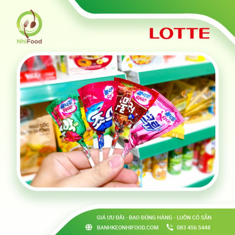Kẹo Mút Lollipops Ice Lotte 4 Vị Trái Cây, Dưa Hấu, Dâu, Coca Và Soda, Gói 132g 🍬Kẹo mút Lotte một sản phẩm được rất nhiều bé nhỏ yêu thích. Một gói gồm có 12 cây gồm 4 kiểu dáng. Mỗi hình dáng kẹo mang theo vị trái cây thơm ngon. 🍭Kẹo mút được làm từ nguyên liệu tự nhiên, không chứa phẩm màu phù hợp với các bé nhỏ. Hương vị ngọt dịu không gắt cổ. Có 4 hương vị: Dưa hấu, dâu, soda và coca. Xuất xứ: Hàn Quốc Hạn sử dụng: 12 tháng kể từ ngày sản xuất #nhifood #banhkeonhapkhau #banhkeoanvat #kẹololipop #keomut #keomutlotte #keomuttraicay