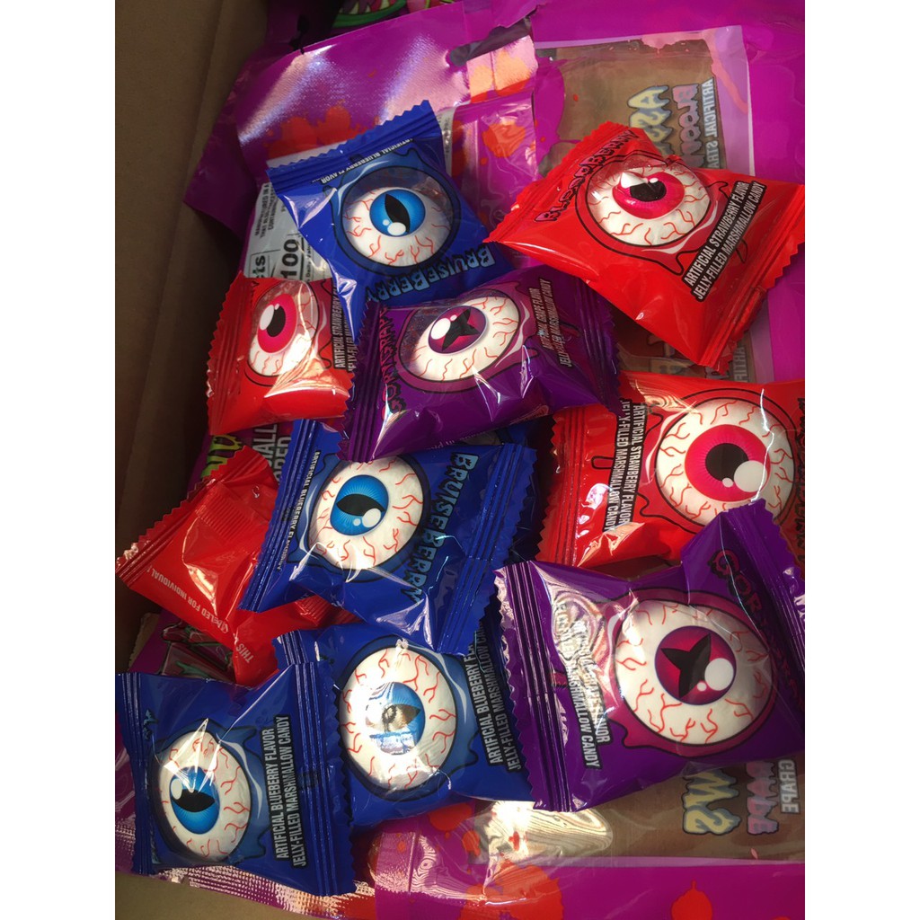 Kẹo Con Mắt Marshmallow Gói 230g - Gói 250gr tầm 50 cục . 🥐🥐 KẸO DẺO CON MẮT MARSHMALLOW OOZING EYE BALLS CANDY 🥐🥐 THÔNG TIN SẢN PHẨM ✔️ Mô tả: Là loại kẻo mềm ngọt vừa với lớp ngoài là marshmallow dẻo dẻo cùng lớp nhân mứt trái cây thơm ngon bên trong. Có 3 loại