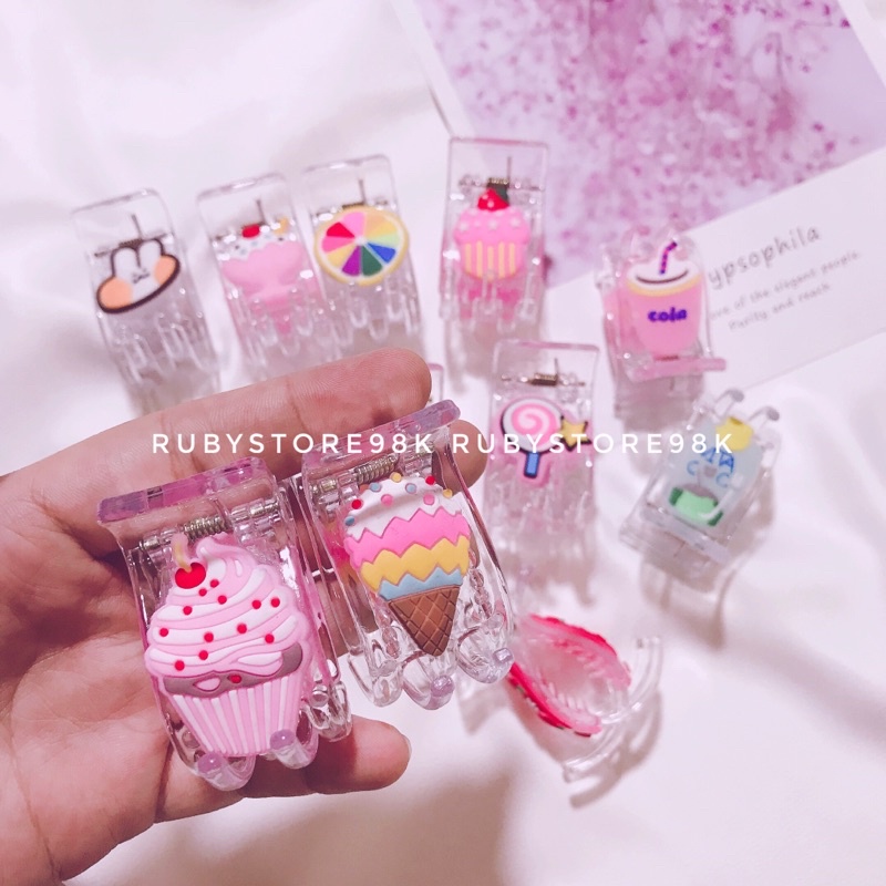 Kẹp càng cua 5 răng icon bánh trái hoa quả , hình xinh loại sp gồm : 1 c hình ngẫu nhiên loại 5 răng chất nhựa dẻo chống gãy hình rất nhiều và cute Shop Rubystore98k chuyên sỉ các sản phẩm phụ kiện tóc xinh , đồ gia dụng , khuyên tai ,tất vớ ,phu kiện mẹ bé chỉ từ 1k.