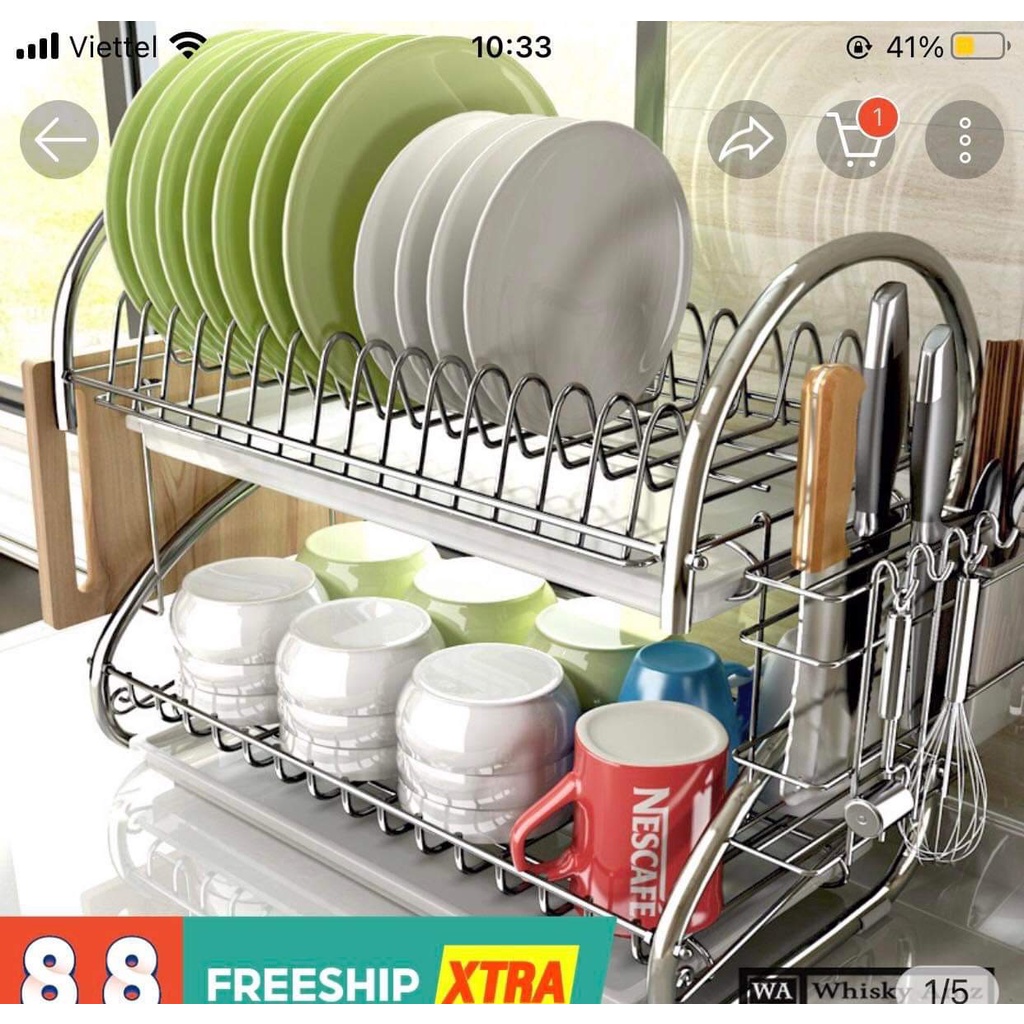 Kệ úp chén bát inox 2 tầng CÓ KHAY HỨNG NƯỚC loại dày dặn đẹp