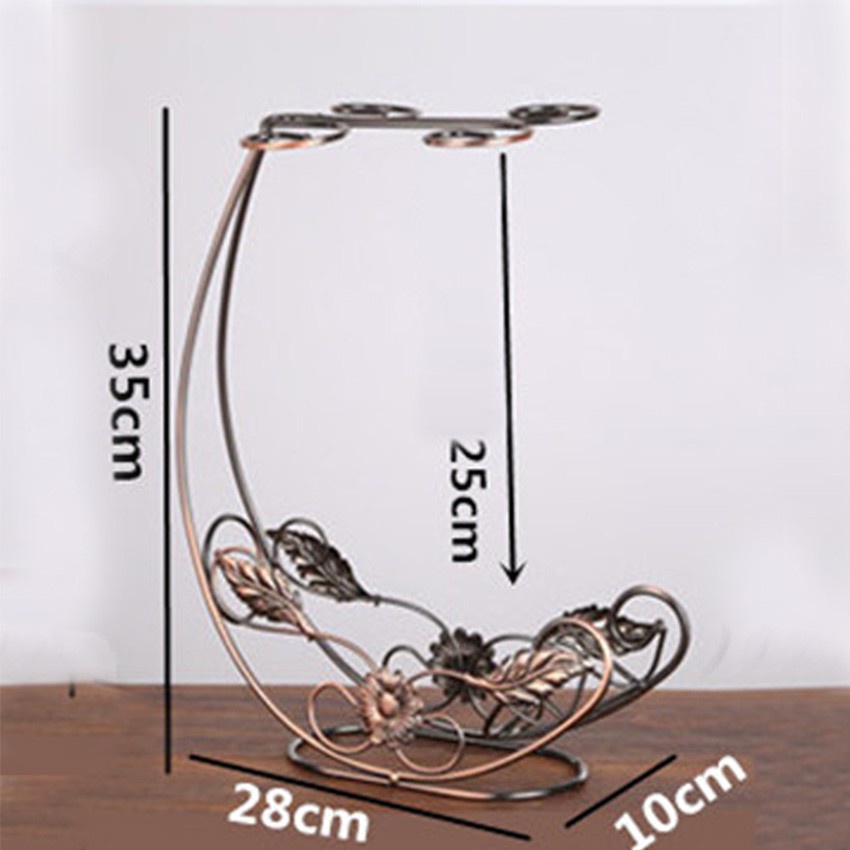 Kệ để rượu kèm giá treo 4 ly vang, Giá đỡ rượu vang có móc treo 4 ly trang trí bàn ăn & quầy bar