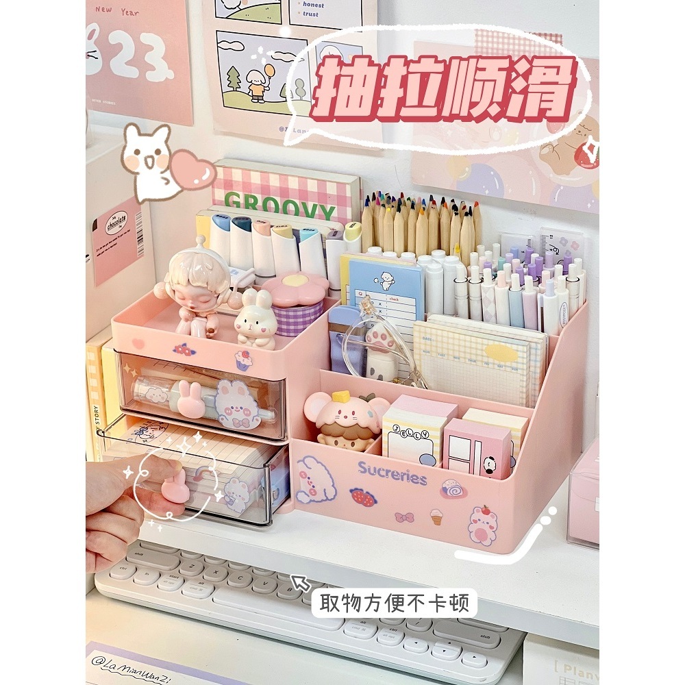 Kệ Đựng Bút , Mỹ Phẩm Để Bàn Có Ngăn Kéo Họa Tiết Thỏ Dễ Thương Tiện Dụng Cho Văn Phòng,derco bàn học ,góc làm việc