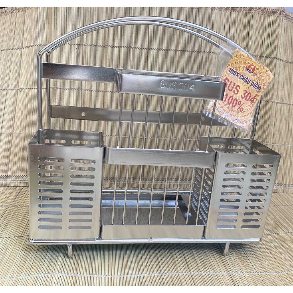 Kệ cài dao, cài thớt, cắm đũa đôi inox 304 có khay hứng nước cao cấp