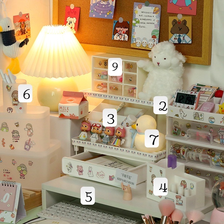 [22 mẫu ] Kệ decor bàn học + tặng sticker decor Masudecor.shop xin chào bạn! Shop sẽ hướng dẫn cách để bạn chọn lựa sản phẩm nhanh chóng và hợp ý cho bạn nhé: - Shop có đăng 10 tấm hình những mẫu decor kệ trên bàn học. Bạn chĩ cần note và nhớ những số thứ tự kệ m