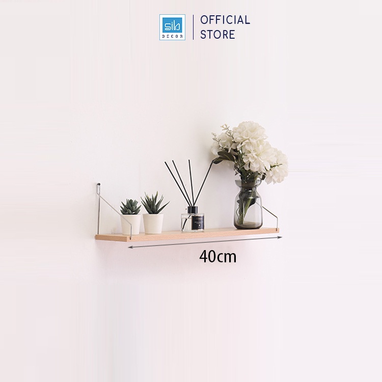 Kệ Gỗ Trang Trí Không Cần Khoan SIB Decor Kích Thước 40 x 15cm, Tặng Kèm Móc Treo Inox Và Phụ Kiện Lắp Đặt