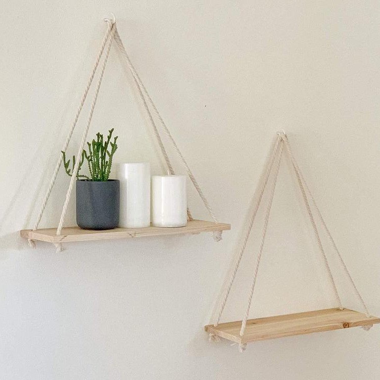 Kệ gỗ treo tường đa năng trang trí dây thừng gỗ thông thơm vintage G01 Kích thước: 1 ván gỗ 47x12cm dày 1.5cm, 2 dây dài 100cm Chất liệu: gỗ thông tự nhiên nhập khẩu ( chưa qua sử dụng) . Màu sắc; màu gỗ tự nhiên, hoặc sơn phủ bóng mờ không màu (giữ được màu sắc và vẻ đẹp tự nhiên của gỗ thông) Đặc điểm: nhẹ, nhỏ gọn, dễ di chuyển, bền Chịu nước tuyệt đối, chống mối mọt, không bắt lửa. Mẫu mã thiết kế: Scandinavian Sản phẩm hoàn toàn không chứa chì nên ko gây độc hại cho sức khoẻ. Thiết kế an toàn: bề mặt mịn đã qua xử lý không gây hư hại cho đồ đạc. Giúp căn nhà trở nên gọn gàng, tiện lợi, hài hòa hơn 2 - CÔNG NĂNG : - Kệ gỗ dùng để trang trí nhà cửa, căn hộ nhỏ, chung cư, dịch vụ homestay,... - Dễ dàng tháo lắp, di chuyển & tùy biến mục đích sử dụng theo ý muốn.