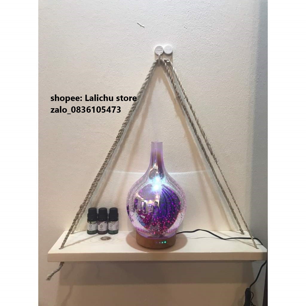 Kệ gỗ treo tường 2 tầng tặng kèm dây thừng decor