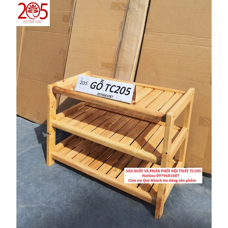 Kệ giày dép gỗ 3 tầng ngang 60 gỗ cao su màu tự nhiên