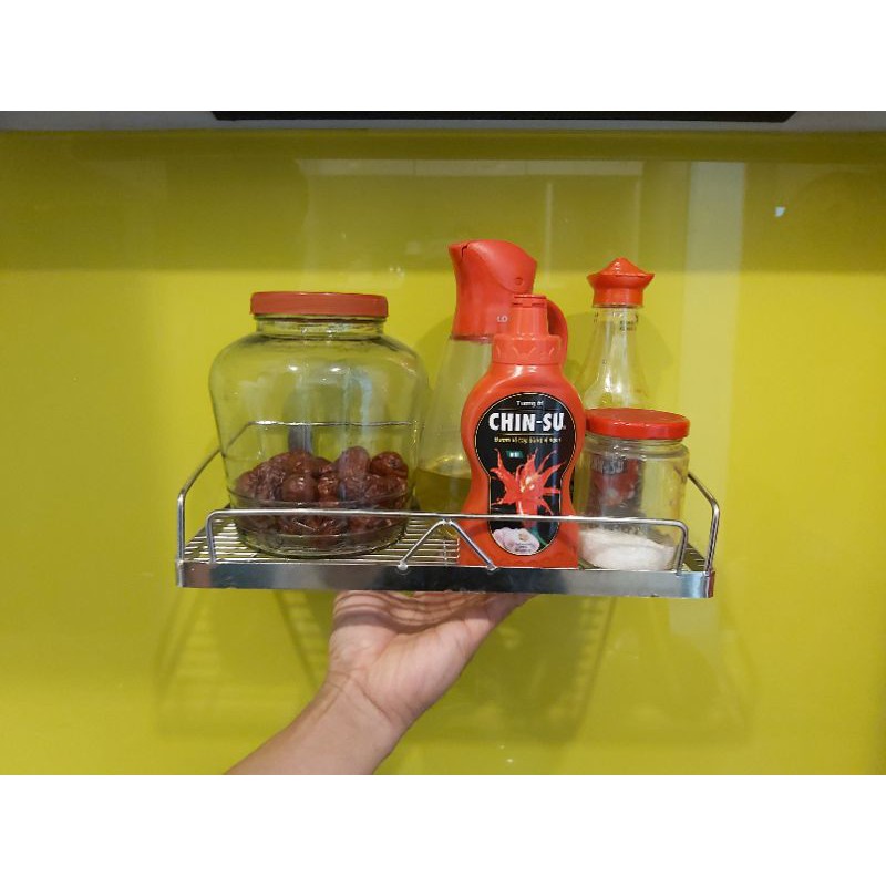 -Kệ gia vị 1 tầng thiết kế treo tường, làm bằng chất liệu inox ko lo han gỉ, hợp với ko gian bếp nhỏ, sắp xếp đồ vật hợp lý sẽ khiến không gian bếp của bạn trở nên đẹp mắt và sinh động. - Chúng tôi nhận đặt theo kích thước quý khách mong muốn.