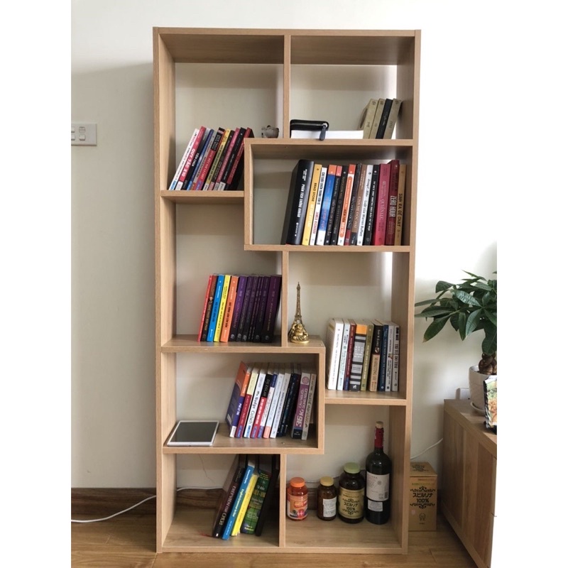 Kệ sách gỗ để sàn đa tầng thông minh màu vân gỗ - Giá kệ hình chữ U
