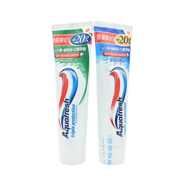 Kem Đánh Răng Aquafresh Nhật Bản - màu xanh dương (bạc hà) + Xuất xứ : Japan + Công dụng : Kem đánh răng Aquafresh có 3 tác dụng chính đó là giúp làm sạch răng, ngừa sâu răng, cho răng chắc khỏe và sáng bóng nhờ công thức ba tác động bảo vệ cùng các phần tử siêu nhỏ tạo bọt giúp làm trắng răng và chống sâu răng vượt trội. Giúp bổ sung canxi và peroxide chống lại các vi khuẩn gây hôi miệng, phòng ngừa sâu răng mang lại hơi thở thơm mát và một hàm răng khỏe đẹp cho gia đình bạn. Nhẹ nhàng tẩy đi vết bẩn và đánh bóng bề mặt, không làm trầy xước men răng giúp loại bỏ vết bẩn sâu tận gốc. Kem đánh răng Aquafresh Nhật bổ sung các khoáng chất cần thiết, để ngăn chặn sự xói mòn của răng do Axit xuất phát từ mảng bám răng