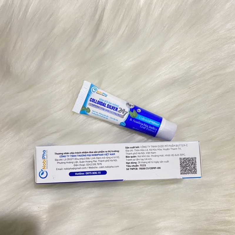 KEM BÔI ĐA NĂNG Colloidal silver 247 tuýp 10g - Kháng khuẩn, dưỡng ẩm tái tạo da dùng được cho phụ nữ có thai và trẻ nhỏ ———————————- Giúp làm sạch da, kháng khuẩn, làm dịu da khi bị: viêm da, hăm, chàm sữa, rôm sảy, mụn nhọt, mẩn ngứa, bỏng nhẹ, sưng tấy do muỗi đốt,