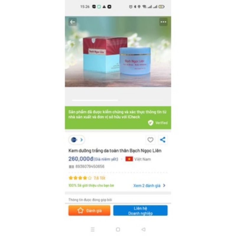 Kem Body Bạch Ngọc Liên Xanh 90g.Kem dưỡng trắng da toàn thân