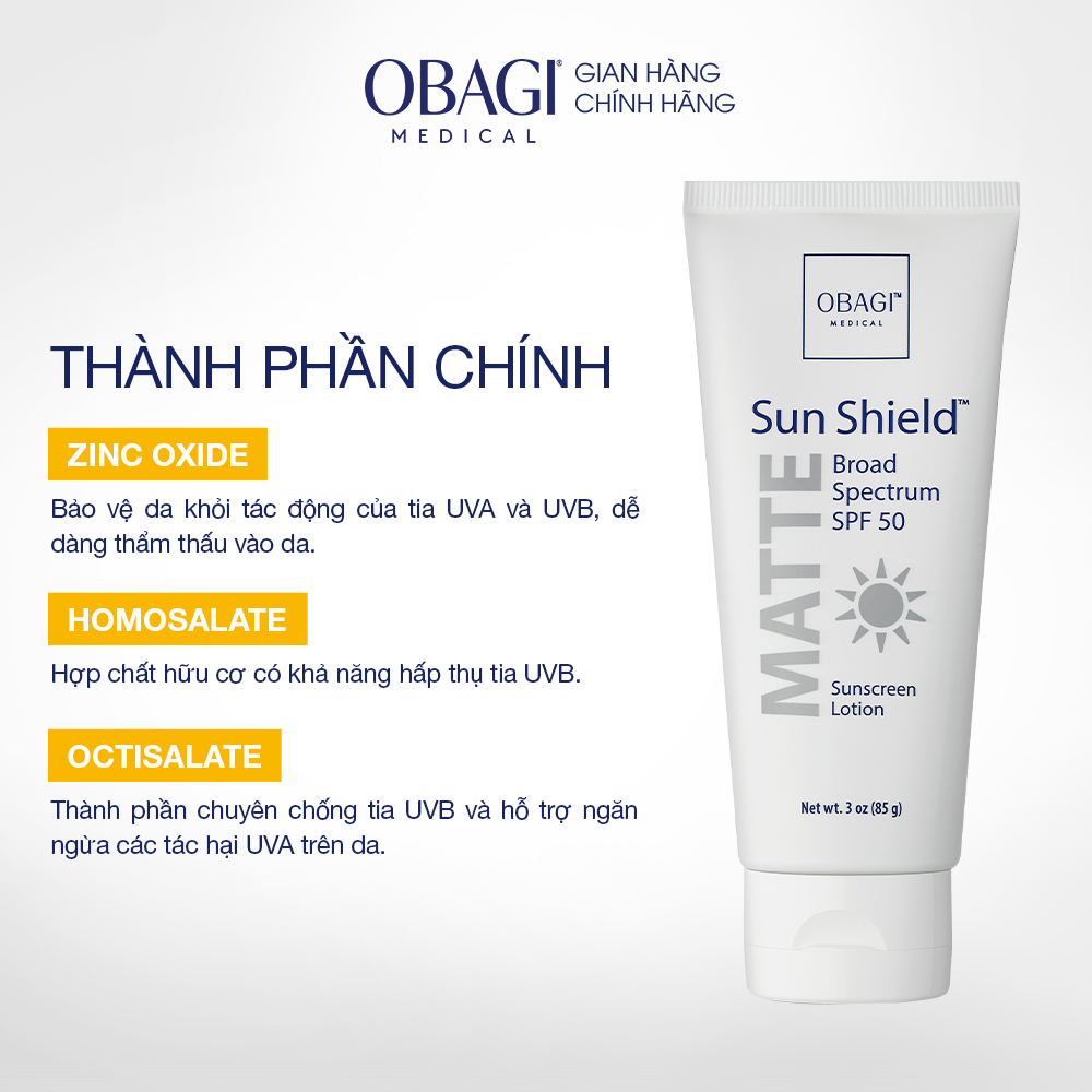 Kem Chống Nắng Phổ Rộng Obagi Sun Shield Matte Broad Spectrum SPF50 85g