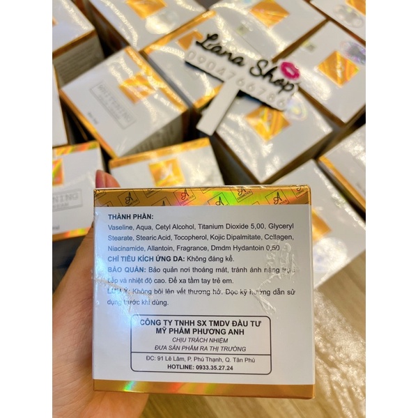 ĐÔI NÉT VỀ A COSMETICS - Năm 2013, Công ty TNHH-TM-DV-ĐT MỸ PHẨM PHƯƠNG ANH được thành lập và sở hữu thương hiệu A Cosmetics - chuyên sản xuất mỹ phẩm và các sản phẩm chăm sóc sắc đẹp. - A Cosmetics là thương hiệu mỹ phẩm hàng đầu của Việt Nam, được quý khách hàng tin dùng bởi: + Sản phẩm được Bộ - Sở y tế kiểm nghiệm và cấp phép lưu hành + Sản xuất trên dây chuyền công nghệ tiên tiến và kiểm soát chất lượng nghiêm ngặt + Hệ thống phân phối rộng khắp cả nước - A Cosmetics luôn đồng hành cùng sắc đẹp của phụ nữ Việt. ➤➤ THÔNG TIN SẢN PHẨM Kem Face Pháp Acosmetics - Sản phẩm: Kem Face Pháp Acosmetics - Thương hiệu: A COSMETICS - Xuất xứ: Việt nam - Công ty sản xuất: Công ty TNHH - SX - TMDV - Đầu Tư Mỹ Phẩm Phương Anh. - Địa chỉ : 91 Lê Lâm, phường Phú Thạnh, quận Tân Phú. Tp. HCM - Khối lượng: 50g - Phù hợp sử dụng cho mọi loại da - NSX: In trên bao bì - HSD: 3 năm kể từ ngày sản xuất ➤➤ CÔNG DỤNG VƯỢT TRỘI Kem Face Pháp Acosmetics - Kem face Pháp Whitening Face Cream giúp làm trắng da, mờ vết thâm mụn, nám, tàn nhang hiệu quả, giảm hắc tố đen (Một trong những nguyên nhân chủ yếu khiến cho làn da đen sạm) - Whitening Face Cream bảo vệ làn da khỏi các tác động có hại từ môi trường - Sử dụng Kem Face Pháp thường xuyên giúp cho làn da của bạn trở nên căng bóng và mịn màng hơn - Ngoài ra, kem dưỡng trắng da face pháp còn có thể ngăn ngừa được các tia cực tím ➤➤ HƯỚNG DẪN SỬ DỤNG Kem Face Pháp Acosmetics - Bước 1: Làm sạch da mặt trước khi thoa kem - Bước 2: Thoa Kem Face Pháp lên toàn bộ khuôn mặt 1 ngày 2 lần sáng & tối hoặc dùng làm kem nền makeup hằng ngày ➤➤ HƯỚNG DẪN BẢO QUẢN Kem Face Pháp Acosmetics - Bảo quản nơi khô ráo, thoáng mát, tránh ánh nắng trực tiếp - Đóng kín nắp sau khi sử dụng - Để xa tầm tay trẻ em ➤➤ SHOP KEM BODY MỀM CAM KẾT - Về sản phẩm: Shop cam kết mô tả và hình ảnh giống 100% mô tả - Về chất lượng: Sản phẩm là hàng chính hãng công ty có giấy tờ chứng nhận - Về dịch vụ: Đội ngũ tư vấn viên nhiệt tình, chu đáo, sẵn sàng giải đáp thắc mắc của khách hàng trong thời gian nhanh nhất - Thời gian chuẩn bị hàng: Hàng có sẵn, thời gian chuẩn bị tối ưu nhất ➤➤QUYỀN LỢI CỦA KHÁCH HÀNG 💋 Shop Kem Body Mềm tiếp nhận xử lý khiếu nại (với lỗi do nhà sản xuất) trong vòng 3 ngày làm việc tính từ khi nhận hàng 💋 Hỗ trợ đổi trả hàng theo chính sách của Shopee 💋 Tư vấn hỗ trợ 24/24 giải đáp mọi thắc mắc khi khách hàng gọi vào số hotline hoặc nhắn tin cho Shop 💋 Khách hàng cũ: Luôn luôn có chương trình ưu đãi tốt nhất dành cho khách hàng Cảm ơn Quý khách đã tin tưởng lựa chọn và sử dụng sản phẩm của chúng tôi! #kem #sua #duong #face #body #kemface #kembody #kemfacephap #kembodymem #kemduongtrang #kemduong #suaduong #kemduongda #suaduongda #duongda #skincare #da #dadau #dakho #danhaycam #chamsocda #trangda #detox #duongtrang #duongam #sachsau #taydachet #chonglaohoa #collagen #mypham #suckhoevasacdep #acosmetics #tuanbin139