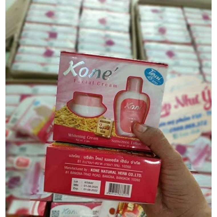 Kem Kone Thái hàng chuẩn có hạt liti kim tuyến Hôp gồm + Kem mặt dạng nén + Chai nước hoa hồng Công dụng làm trắng căng bóng da, se khít lổ chân lông Sỉ số lượng liên hệ để có giá tốt