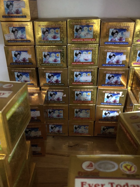 CÔNG DỤNG Kem Nám, Trắng Da - Mủ Trôm Tân Gia Khang được bào chế từ thảo dược thiên nhiên có tác dụng làm mờ các vết nám, làm phai những vết thâm sạm, đốm nâu, tàn nhang, đồi mồi không láng mịn. Sau một tuần sử dụng bạn đã khôi phục lại làn da láng mịn trẻ trung hơn bao giờ hết. THÀNH PHẦN Nelumbo Nucifera Leaf Extract, Camellia Sinensis Leaf Extract, Psidium Guajava Leaf Extract, Angelica Gigas Extract, Caprae Butyrum, Sterculia Foetida Sterculiaceae-Gum, Vaseline, Ethylhexyl Palmitate, Glyceryl Stearate, Titanium Dioxide, Betaine Salicylate, Retinyl Palmitate, Tocopheryl Acetate, Glycerin, Glycolic Acid, Lactic Acid, Octyl methoxycinnamate, Phenoxyethanol, Ubiquinone, Phaseolus Radiatus Seed Extract, Colloidal Oatmeal, Parfum, Pearl Powder. HƯỚNG DẪN SỬ DỤNG Thoa một lớp kem mỏng đều lên da, ngày chỉ 1 lần, sáng hoặc tối. Đọc kỹ hướng dẫn trước khi sử dụng. Để xa tầm tay trẻ em, không thoa lên vùng da bị trầy xước. #Kemnamtrangda