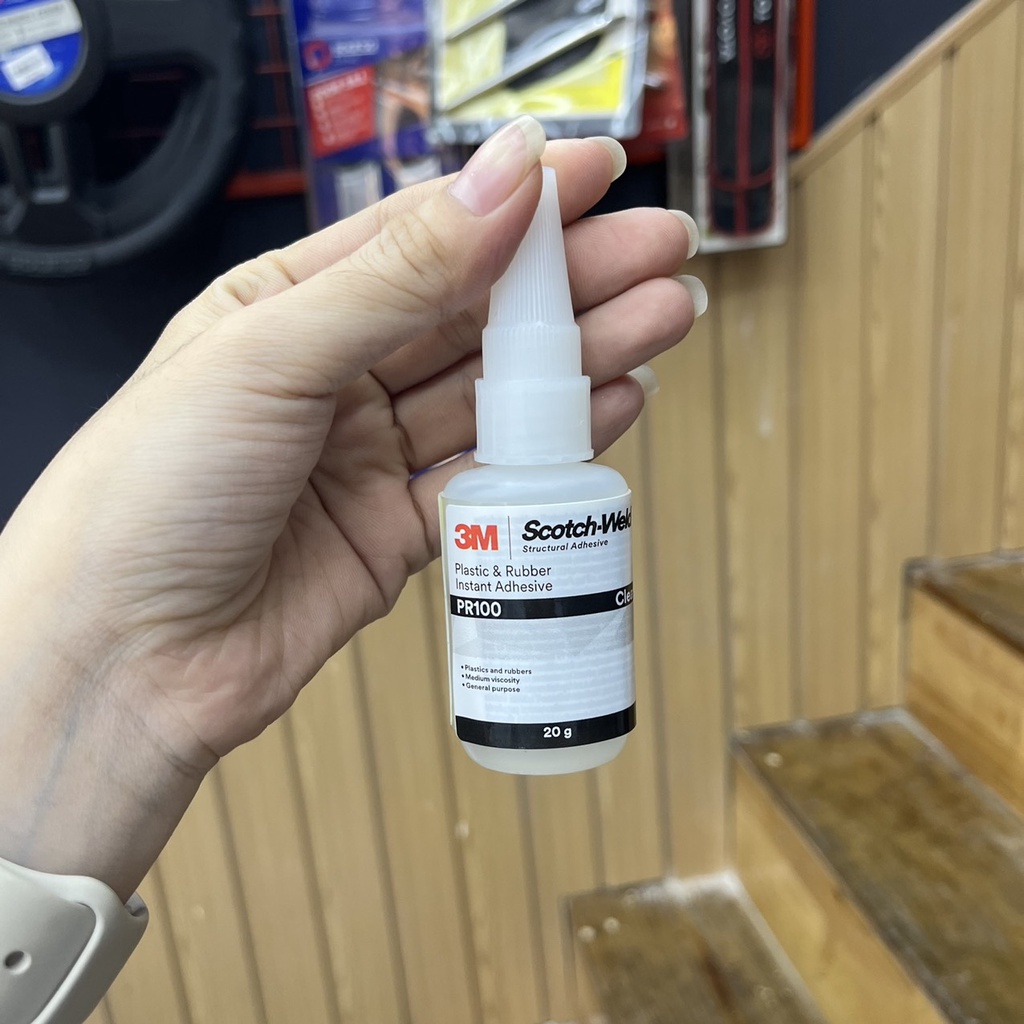 Keo Dán 3M Pr100 Siêu Dính Chuyên Dán Giày , Nhựa Plastic , Rubber , Cao Su , Sắt 20G chamsocxestore 3M PR100 là keo loãng, dễ sử dụng chuyên dùng dán nhựa và cao su, đặc biệt dùng cho các bề mặt khó dán như là nhựa plastic , rubber , cao su , sắt. Công Dụng Và Tính