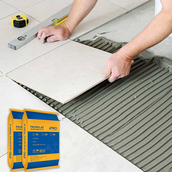 Vữa dán gạch ốp lát PROMO-AT50 là loại vữa trộn sẵn chất lượng cao, dùng trong thi công ốp lát gạch đá…. Vữa dán PROMO-AT50 được sản xuất theo công nghệ hiện đại, đáp ứng các yêu cầu kỹ thuật của TCVN 7899:2008 và EN 12004:2001. PHẠM VI ỨNG DỤNG - Vữa dán PROMO-AT