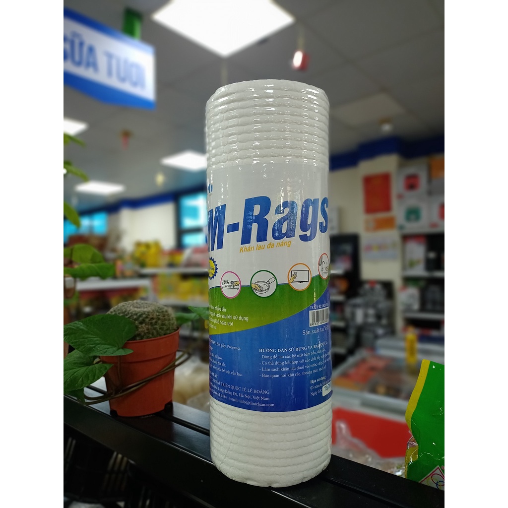 Khăn lau Đa năng M-Rags Xuất xứ: Việt Nam Khăn lau Đa năng M-Rags là hàng Việt Nam cao cấp, có thể tái sử dụng nhiều lần. Dễ dàng giặt sạch sau khi sử dụng Có thể dùng khô hoặc ướt, thẩm hút tốt Khả năng đàn hồi cao. Nhanh khô, thấm hút tốt. Không gây trầy xước bề mặt cần lau. Khăn lau Đa năng Bảo quản đơn giản ở nơi khô ráo, thoáng mát, sạch sẽ, dùng để lau các bề mặt bám bẩn, dầu mỡ... Có thể dùng kết hợp với các chất tẩy rửa gia dụng khác. Làm sạch khăn lau dưới vòi nước chảy, vắt và phơi khô.