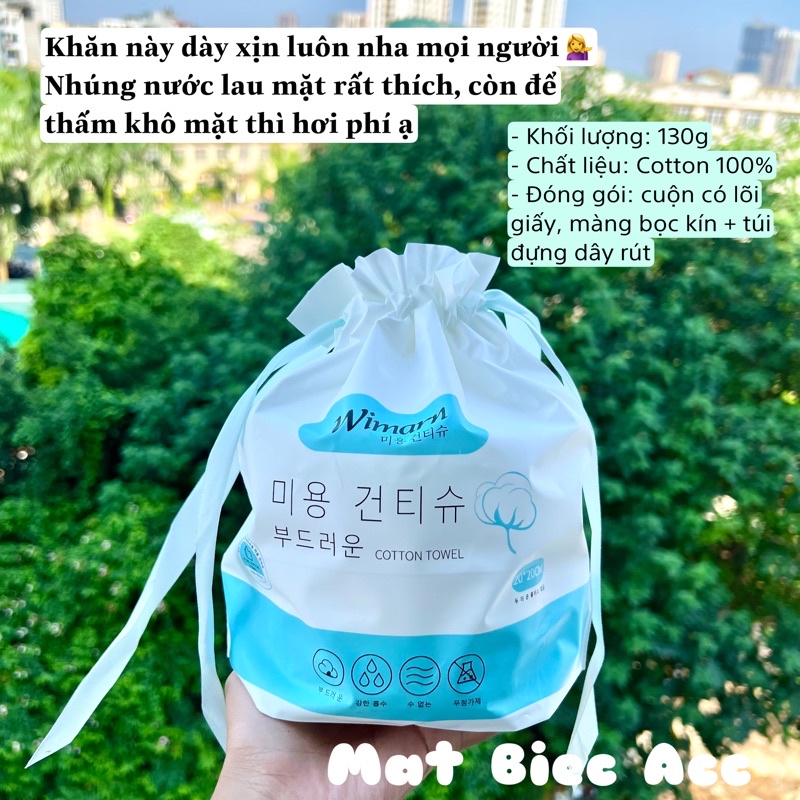 Cám ơn bạn đã ủng hộ sản phẩm của Mắt Biếc Accessories! THÔNG TIN SẢN PHẨM: Khăn Wimarm dạng tệp xuất Hàn: loại này dày hơn, cao cấp hơn loại Kimhome bao bì trắng shop bán. - Khăn mặt dùng 1 lần lau khô ướt, giấy đa năng 100% cotton (nội địa Trung) - Số lượng: Dạng